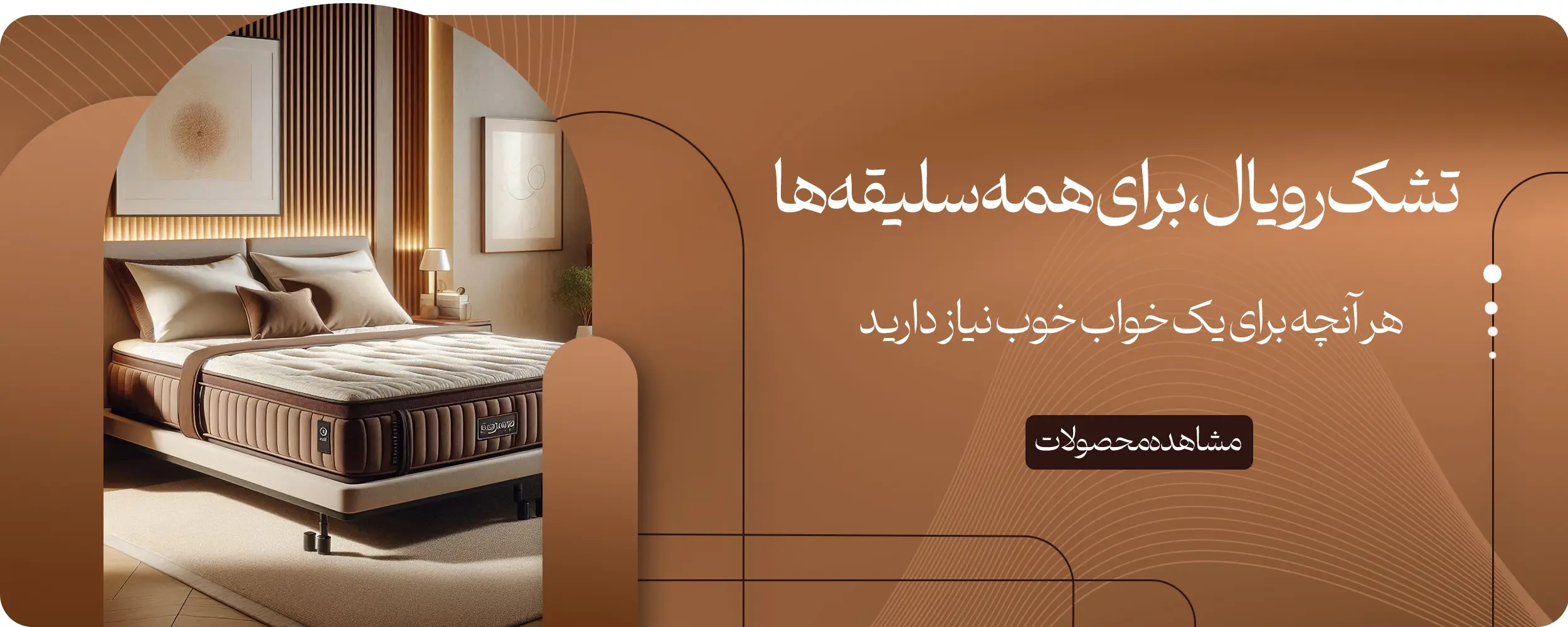 ● تشکهای رویال با بهرهگیری از تکنولوژی روز دنیا، طراحی ارگونومیک و استفاده از بهترین متریال، خوابی عمیق و راحت را برای شما به ارمغان میآورند. دوام بالا، پشتیبانی طبی، تنوع مدلها و زیبایی در طراحی، رویال را به انتخاب اول کسانی تبدیل کرده که به کیفیت خواب خود اهمیت میدهند.
