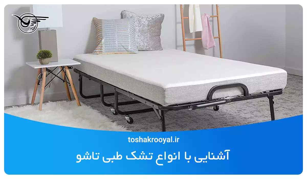 تختخواب‌ها انواع مختلفی دارند که یکی از آن‌ها تختخواب تاشو است. این نوع تخت، قابل‌حمل و سیار است و بیشتر حالت مسافرتی دارد؛ البته این تخت در خانه‌ها و اتاق‌های کوچک نیز استفاده می‌شود. تشک طبی تاشو، یک تشک مناسب برای تخت تاشو است.